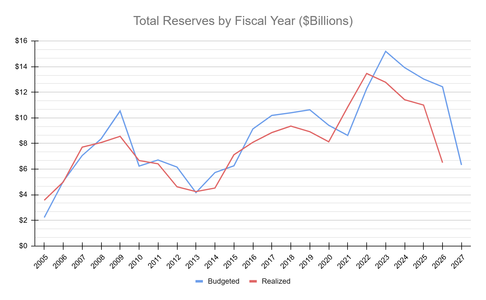 Switching our view from realized to budgeted reserves, including this year’s proposed budget, we see: