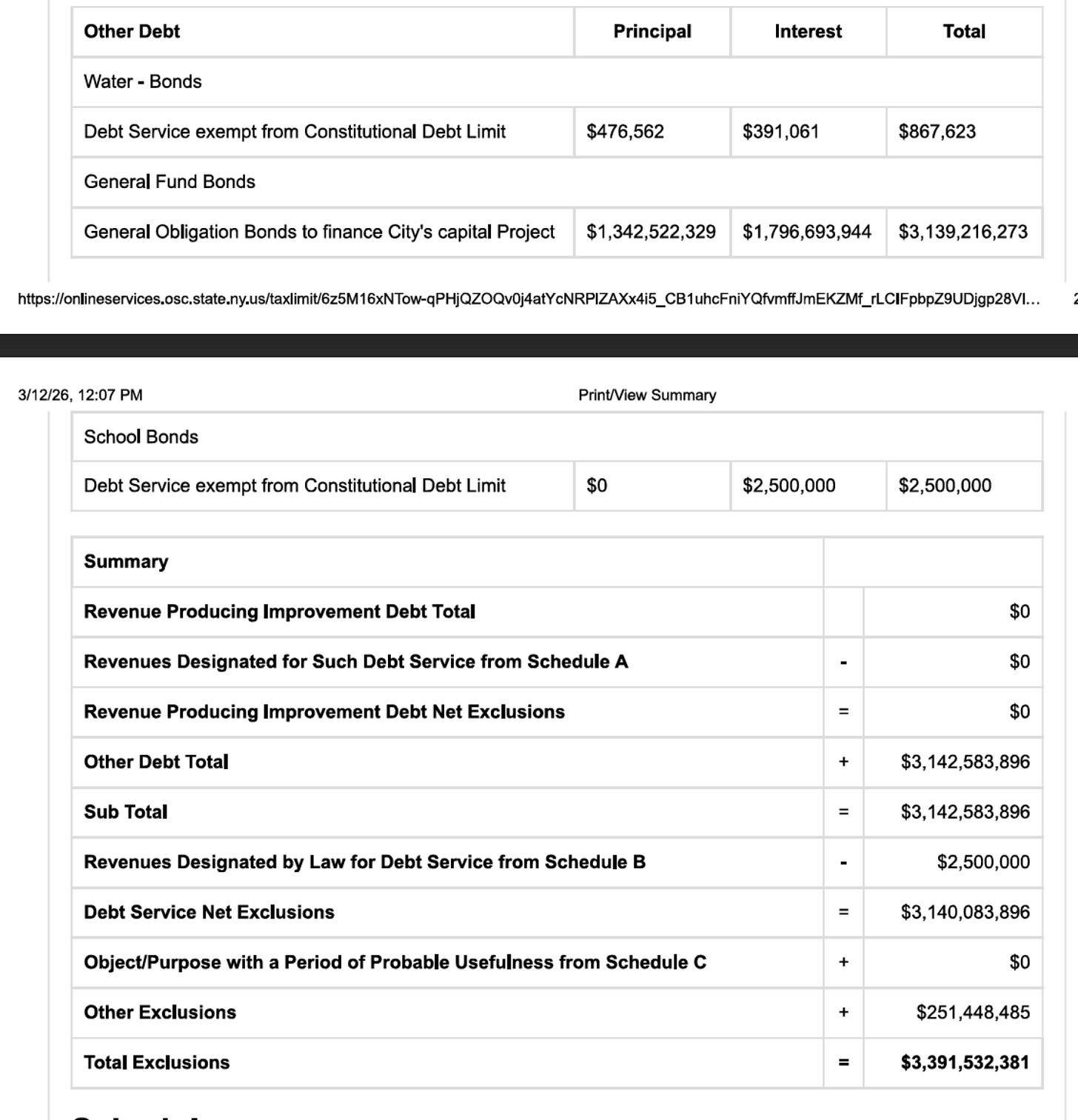 I made an attempt at explaining the limit on property tax levies imposed by the NYS Constitution. It left some open questions on exactly what exclusions the City uses in its calculation of the limit and just how close the proposed FY27 budget gets.